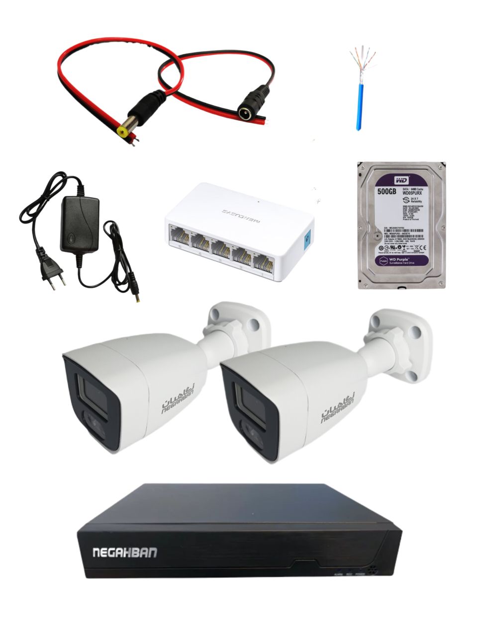 پکیج کامل 2 دوربین مداربسته نگاهبان DN_957_XNV +NVR وهارد500 گیگWD Purple+کیفیت Full HD