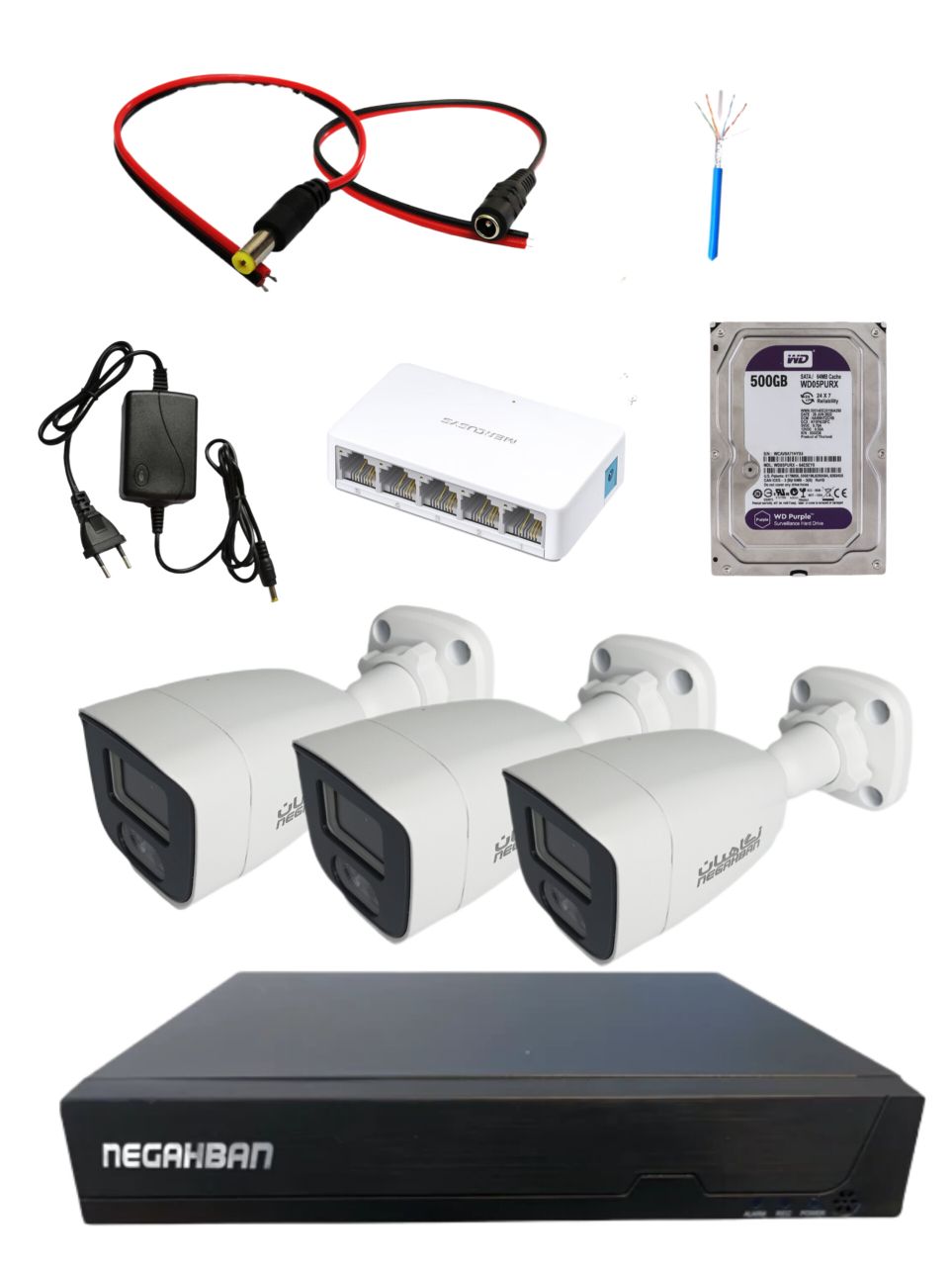 پک کامل 3 دوربین مداربسته نگاهبان IP BN_902_VJ +NVR وهارد500 گیگWD Purple+با دید درشب رنگی