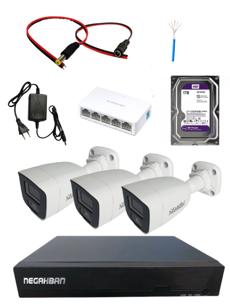 پکیج کامل 3 دوربین مداربسته نگاهبان IP BN_905_KJ +NVR وهارد1ترابایت WD Purple+کیفیت Full HD