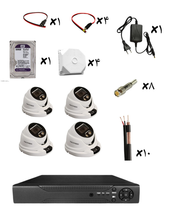 پکیج عالی 4 دوربین مداربسته نگاهبان AHD DN-842-X33+دستگاه ضبط+هارد 500 گیگ