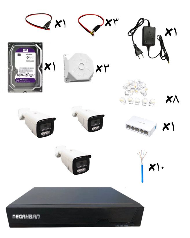 پک کامل 3 دوربین مداربسته نگاهبان BN_905_GH IP،هارد1ترابایت،NVR،زاویه دید گسترده