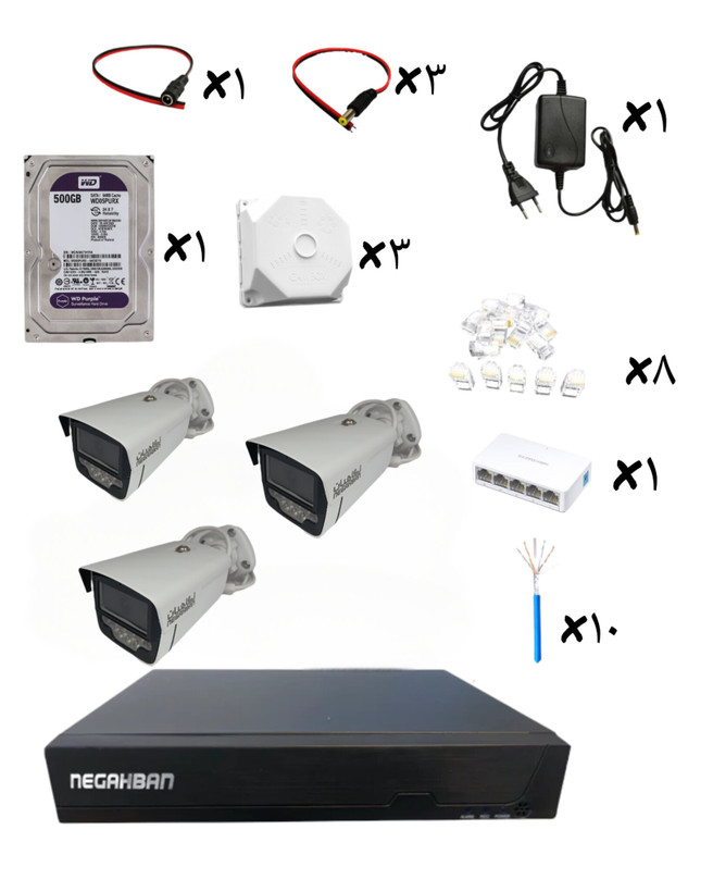 پک کامل 3 دوربین مداربسته نگاهبان IP BN_902_VJ +NVR وهارد500 گیگWD Purple+با دید درشب رنگی