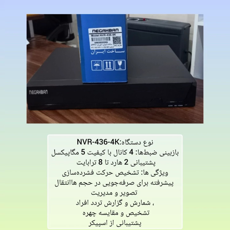 PREVIEW: 36CH 4K امکان نمایش زنده تا 36 کانال بهصورت همزمان با کیفیت 4K (چیدمان چندتصویری روی مانیتور). PLAYBACK: 4CH 4K / 4CH 5MP بازپخش همزمان 4 کانال با کیفیت 4K یا 5 مگاپیکسل از تصاویر ضبطشده. HARD: 2 HARD UP TO 8TB پشتیبانی از 2 هارد دیسک ظرفیت هر هارد تا 8 ترابایت (در مجموع تا 16 ترابایت). OUTPUT: HDMI, VGA خروجی تصویر HDMI و VGA برای اتصال به مانیتور یا تلویزیون. OTHER (سایر امکانات): Motion Detection: تشخیص حرکت H.264 / H.265: فشردهسازی پیشرفته برای صرفهجویی در حجم هارد AFROOZSazan APP: انتقال تصویر و مدیریت از راه دور با موبایل Passenger Flow Query: شمارش و گزارش تردد افراد (نیاز به دوربین سازگار) Face Capture & Comparison: تشخیص و مقایسه چهره (نیاز به دوربین مخصوص) Support Speaker: پشتیبانی از اسپیکر (برای هشدار یا صدای دوطرفه)