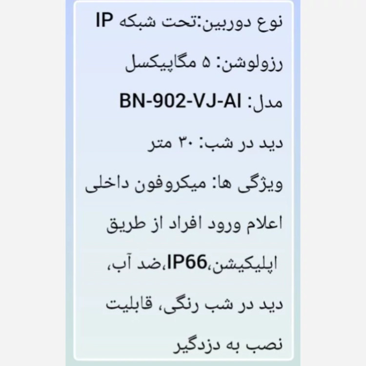 دوربین مداربسته نگاهبان BN_902_VJ IP هوشمند،پیشرفته، تمام رنگی