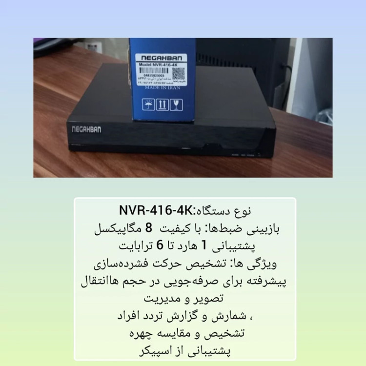 🔹 مشخصات اصلی دستگاه Preview : 16CH 4K امکان نمایش زنده همزمان 16 دوربین با کیفیت 4K (برای مانیتورینگ کامل یک مجموعه بزرگ) Playback : 1CH 4K / 2CH 5MP در حالت بازبینی: پخش 1 کانال با کیفیت 4K یا پخش همزمان 2 کانال 5 مگاپیکسل Hard : 1 Hard up to 6TB دارای 1 جای هارد با پشتیبانی تا 6 ترابایت (مناسب ضبط طولانیمدت) Output : HDMI, VGA خروجی تصویر: HDMI (تلویزیون و مانیتور جدید) VGA (مانیتورهای قدیمی) 🔹 امکانات نرمافزاری و هوشمند Motion Detection تشخیص حرکت و ضبط هوشمند (صرفهجویی در فضای هارد) H.264 / H.265 فشردهسازی حرفهای تصویر: کاهش حجم فایلها مصرف کمتر اینترنت کیفیت بهتر ضبط AFROOZSAZAN APP مشاهده تصاویر از راه دور با موبایل (اندروید و iOS) Passenger Flow Query قابلیت شمارش افراد مناسب فروشگاهها، مراکز تجاری و ادارات Face Capture & Comparison