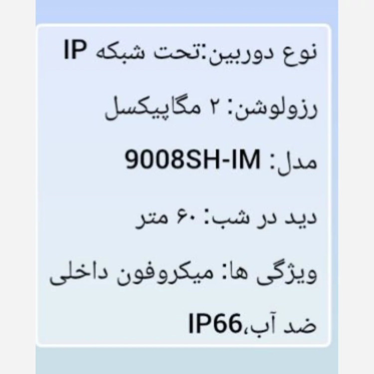 دوربین مداربسته 9008SH با کیفیت تصویر HD، دید در شب قوی و اتصال بیسیم Wi-Fi، راه حلی ایدهآل برای نظارت بر خانه و محل کار شماست. 9008SH با قابلیت تشخیص حرکت، ضبط ویدئو و صدا، و دسترسی از راه دور، امنیت و آرامش را به شما هدیه میدهد. توضیحات فنی،دوربین تحت شبکه 9008SH با رزولوشن2 مگاپیکسل، زاویه دید [زاویه دید دقیق] و پشتیبانی از پروتکل ONVIF، امکانات گستردهای برای سیستمهای نظارتی IP فراهم می آورد.این مدل از دوربینها بهگونهای طراحی شدهاند که بررسی محیط، ثبت تصویر با کیفیت بالا و عملکردی پایدار را فراهم میکنند. همچنین با استفاده از قطعات باکیفیت،از ایمنی کافی برخوردار بودهاند. این دوربینها با بهرهگیری از سنسور و پردازنده قدرتمند، تصاویر شفاف و واضحی را ثبت میکنند. بنابراین مناسب فضاهای تجاری و مسکونی هستند. قابلیت پشتیبانی از ذخیرهسازی تصاویر بهصورت مداوم را دارند و با وضوح عالی ثبت میکنند. این ویژگی باعث میشود نظارت دقیقتری بر محیط امکانپذیر باشد. از دیگر مزایای این مدل میتوان به کاهش نویز تصویر، دید در شب مناسب و زاویه دید گسترده اشاره کرد. به همین دلیل در محیطهای داخلی و خارجی عملکرد مطلوبی دارد. در نهایت، این مدل با نصب آسان و کاربری ساده، گزینهای مناسب برای افزایش امنیت محسوب میشود و با استفاده از فناوریهای بهروز، تصویربرداری دقیق در شرایط مختلف را تضمین میکند. 2 سال گارانتی واقعی،ارسال سریع+تست قبل از ارسال