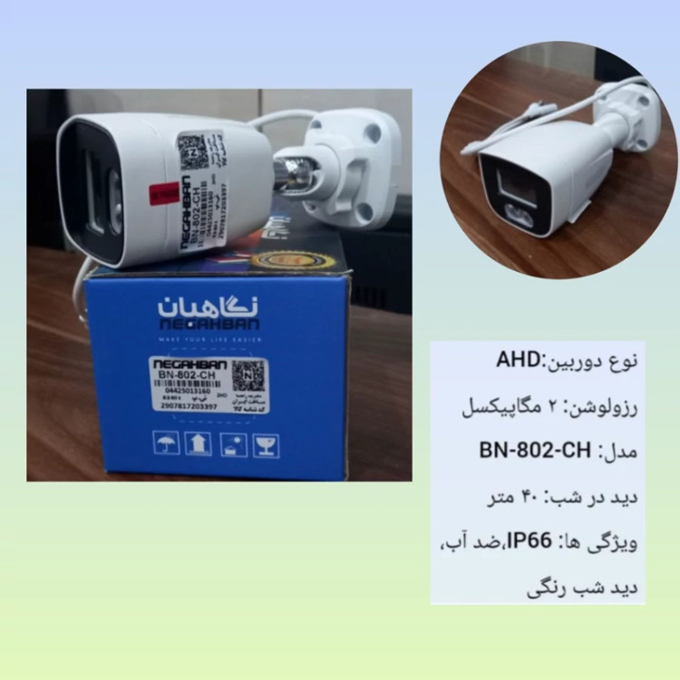 وضوح تصویر واقعی، بدنه فلزی،گواهیIp66 برای نصب در فضای باز و مقاوم در برابرشرایط آب و هوایی مختلف،ضد آب و گرد و غبار،این دوربین برای کسانی که به دنبال یک سیستم نظارتی اقتصادی اما با قابلیت دید در شب رنگی هستند، گزینه مناسبی است،2 سال گارانتی واقعی،ارسال سریع+تست قبل از ارسال