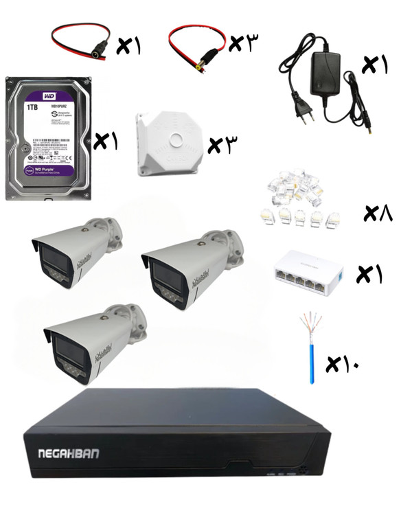 پک کامل3 دوربین مداربسته نگاهبان IP BN_902_VJ +NVR + هارد 1TB