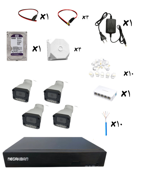 پک4دوربین مداربسته نگاهبان BN_905_KJ IP،دستگاهNVR+هارد1ترابایت