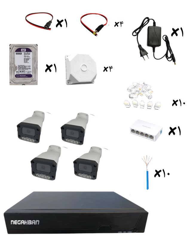 پکیج دوربین مداربسته IP بالت 5MP مجموعهای از دوربینهای شبکه (IP) با کیفیت ۵ مگاپیکسل و متعلقات نصب است.