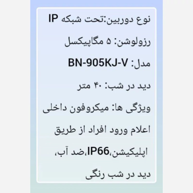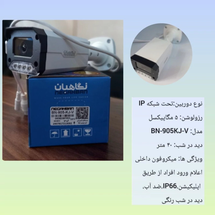 اگر بخوای یک دوربین: 5 مگاپیکسل واقعی دید در شب رنگی ضبط صدا هوشمند (تشخیص انسان) مناسب فضای باز داشته باشی، BN-905-KJ-V نگاهبان انتخاب خیلی خوبی است این مدل از دوربینها بهگونهای طراحی شدهاند که بررسی محیط، ثبت تصویر با کیفیت بالا و عملکردی پایدار را فراهم میکنند. همچنین با استفاده از قطعات باکیفیت، از ایمنی کافی برخوردار بودهاند. این دوربینها با بهرهگیری از سنسور و پردازنده قدرتمند، تصاویر شفاف و واضحی را ثبت میکنند. بنابراین مناسب فضاهای تجاری و مسکونی هستند. قابلیت پشتیبانی از ذخیرهسازی تصاویر بهصورت مداوم را دارند و با وضوح عالی ثبت میکنند. این ویژگی باعث میشود نظارت دقیقتری بر محیط امکانپذیر باشد. از دیگر مزایای این مدل میتوان به کاهش نویز تصویر، دید در شب مناسب و زاویه دید گسترده اشاره کرد. به همین دلیل در محیطهای داخلی و خارجی عملکرد مطلوبی دارد. در نهایت، این مدل با نصب آسان و کاربری ساده، گزینهای مناسب برای افزایش امنیت محسوب میشود و با استفاده از فناوریهای بهروز، تصویربرداری دقیق در شرایط مختلف را تضمین میکند. 👍🎯 کاربردهای پیشنهادی ✔️ مغازه و فروشگاه ✔️ خانه و ویلا ✔️ پارکینگ و حیاط ✔️ دفتر و انبار ✔️ ورودی ساختمان، 2 سال گارانتی واقعی،ارسال سریع+تست قبل از ارسال