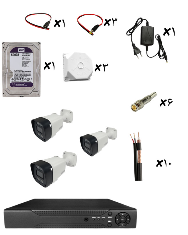 پکیج 3دوربین مداربسته نگاهبان AHD BN_802_Y61دید در شب قوی+ضبط آنلاین+هارد مخصوص WD Purple
