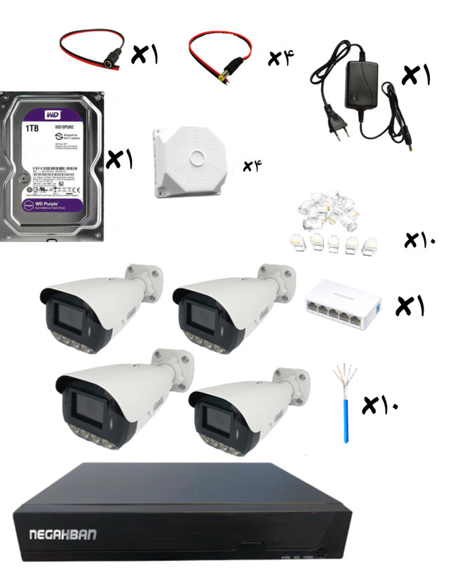 پکیج4دوربین نگاهبان IP BN-905-FG،دستگاه NVR،هارد 1ترابایت